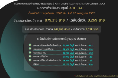 ดีอี เผยผลงาน 1 ปี AOC 1441 ร่วมหน่วยงานพันธมิตร ลุยปราบ “โจรออนไลน์” ระงับบัญชีต้องสงสัยแล้วกว่า 340,000 เคส