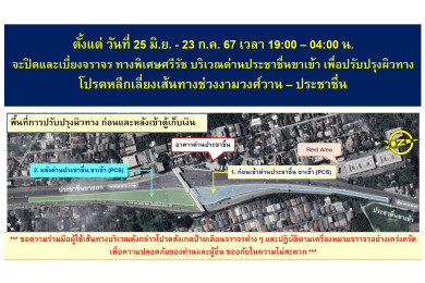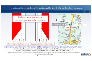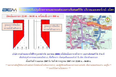 "BEM" แจ้งเบี่ยงการจราจรชั่วคราว บริเวณบ้านเอื้ออาทรประชานิเวศน์ขาออก 2 ช่องทางตามช่วงเวลา