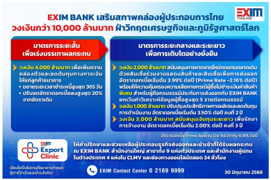 EXIM BANK อัดฉีด 10,000 ล้าน เสริมสภาพคล่องผู้ประกอบการไทย ฝ่าวิกฤตเศรษฐกิจ-ภูมิรัฐศาสตร์โลก