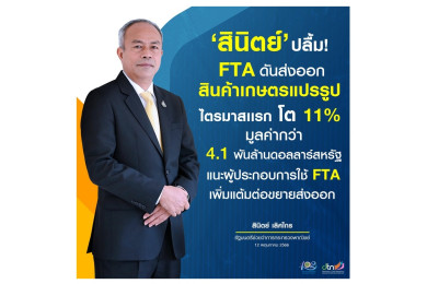 FTA ดันส่งออกสินค้าเกษตรแปรรูป Q1 โต 11% แนะผู้ประกอบการไทยใช้ประโยชน์ปั๊มรายได้-แต้มต่อแข่งขัน
