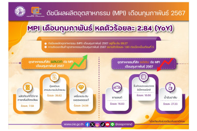 ดัชนี MPI ก.พ.หดตัว 2.84% จับตาส่งออกสินค้าอุตฯขยายตัวเดือนที่ 5 นักท่องเที่ยวเพิ่ม 50% หนุนดัชนีฟื้นตัวดีขึ้น
