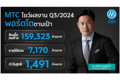 "MTC" มุ่งสร้างโอกาสเข้าถึงแหล่งเงินทุนอย่างเป็นธรรม ดันพอร์ตสินเชื่อ Q3/67 เติบโต 14.83% แตะระดับ 159,323 ล้าน