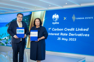 “กรุงไทย” และ “กลุ่ม สิงห์ เอสเตท” ร่วมก้าวสู่ Net Zero ทำสัญญาป้องกันความเสี่ยงอัตราดอกเบี้ย เชื่อมโยงคาร์บอนเครดิตครั้งแรกในไทย