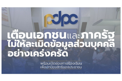 PDPC เตือนบริษัทเอกชน-หน่วยงานภาครัฐ ไม่ให้ละเมิดข้อมูลส่วนบุคคลอย่างเคร่งครัด-เปิดช่องทางร้องเรียนปกป้องสิทธิประชาชน
