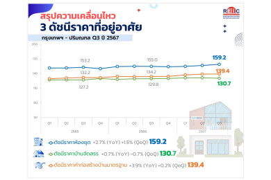 REIC ส่งสัญญาณ Q4/67 โอกาสทองซื้อบ้าน หลังดัชนีราคาที่อยู่อาศัยปรับขึ้นทุกไตรมาส คาดปี 68 บ้านจัดสรร-ห้องชุดปรับขึ้นราคา