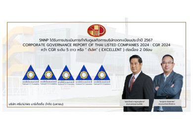 SNNP คว้า CGR ดีเลิศ 5 ดาว 2 ปีซ้อนจากโครงการสำรวจด้านการกำกับดูแลกิจการของบริษัทจดทะเบียนไทยประจำปี 2567