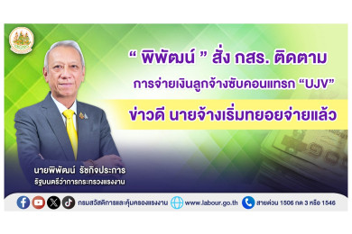 “พิพัฒน์” สั่ง กสร.ติดตามการจ่ายเงินลูกจ้างซับคอนแทรก“UJV” ข่าวดีนายจ้างเริ่มทยอยจ่ายแล้ว