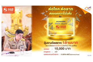 "ธอส." เปิดขายสลาก “ต่อเงินต่อทอง” 12 ม.ค.นี้ ลุ้นรางวัลเป็นสลากมูลค่าสูงสุด 1 ล้านบาท ต่อโชคต่อลาภถึง 36 งวด