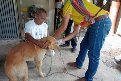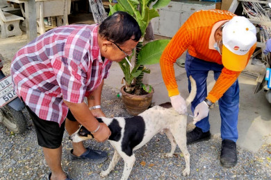 เทศบาลตำบลโพตลาดแก้ว ฉีดวัคซีนป้องกันโรคพิษสุนัขบ้า “โครงการสัตว์ปลอดโรคคนปลอดภัย”