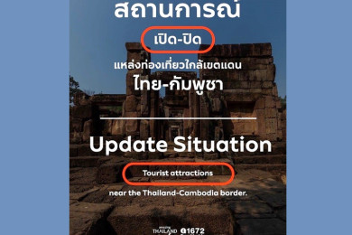 ททท.อัพเดตแหล่งท่องเที่ยวในพื้นที่ 7 จังหวัดติดชายแดนไทย-กัมพูชาไม่ควรเข้าไปในช่วงเกิดเหตุปะทะ 25 พื้นที่