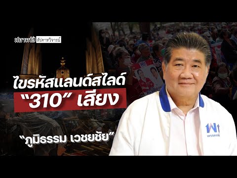 สยามรัฐออนไลน์ 25 มีนาคม 2566 15:33 น. Embedded video for ไขรหัสแลนด์สไลด์ 310 เสียงภูมิธรรม เวชยชัย รองหัวหน้าพรรคเพื่อไทย มาไขรหัสแลนด์สไลด์ 310 เสียง กับสยามรัฐสัปดาหวิจารณ์