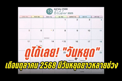 ดูได้เลย! "วันหยุด" เดือนตุลาคม 2568 มีวันหยุดยาวหลายช่วง ทั้งราชการ-ธนาคาร เตรียมวางแผนเที่ยวได้เลย