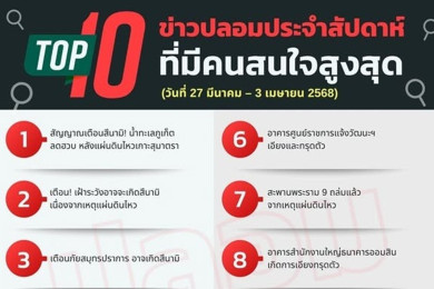 เปิด "ข่าวปลอม" 10 อันดับ ว่อนเน็ตรอบสัปดาห์! "สัญญาณเตือนสึนามิ" เตือนอย่าหลงเชื่อ!