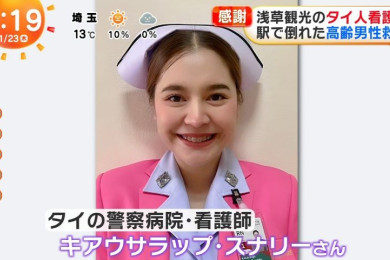 ยกย่อง "สาวไทย"! "ญี่ปุ่น" นำเสนอข่าว "พยาบาล ตร.หญิงชาวไทย" ช่วยชีวิตชายสูงอายุ ย่านอาซากุซะ