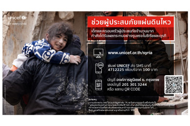 ยูนิเซฟ ประเทศไทย ประกาศระดมทุนเร่งด่วน ช่วยผู้ประสบภัยเหตุแผ่นดินไหวในตุรกีและซีเรีย