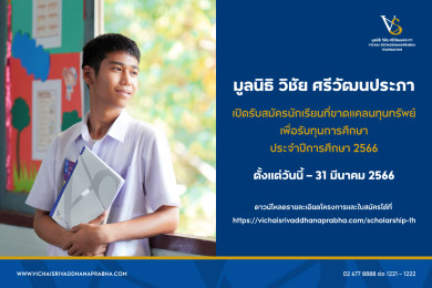 มูลนิธิ วิชัย ศรีวัฒนประภา เปิดรับสมัครนักเรียนที่ขาดแคลนทุนทรัพย์ เพื่อรับทุนการศึกษา ประจำปีการศึกษา 2566