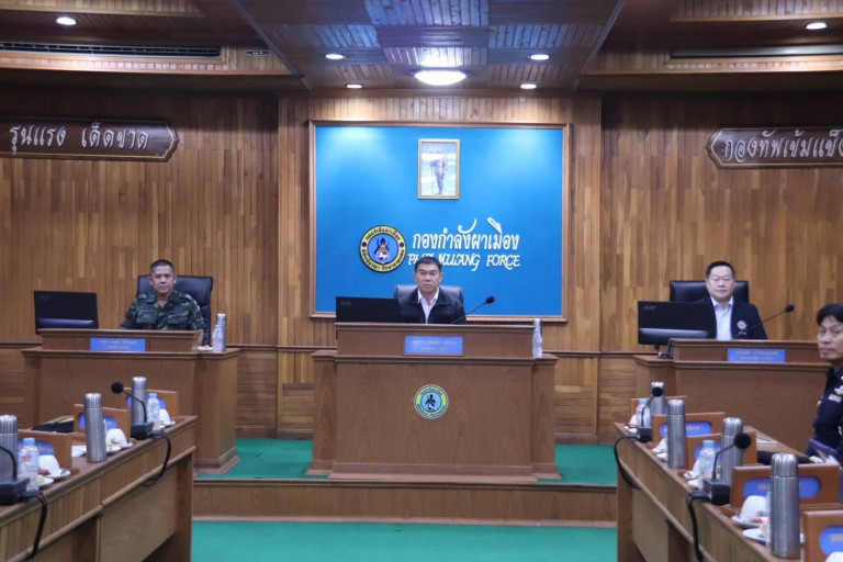 วันที่ 3 สิงหาคม 2567 เวลา 10.00 น. ที่ ห้องประชุมทองจัตุ กองกำลังผาเมือง อ.เมือง จ.เชียงใหม่ พลตำรวจโทภาณุรัตน์ หลักบุญ เลขาธิการคณะกรรมการป้องกันและปราบปรามยาเสพติด (เลขาธิการ ป.ป.ส.) พร้อมด้วยนายอภิกิต ฉ.โรจน์ประเสริฐ รองเลขาธิการ ป.ป.ส. และคณะ ลงพื้นที่จังหวัดเชียงใหม่ เพื่อติดตามสถานการณ์ยาเสพติด และขับเคลื่อนกลไกในการสกัดยาเสพติดของหน่วยบัญชาการสกัดกั้นและปราบปรามยาเสพติด สารตั้งต้น และเคมีภัณฑ์ชายแดนภาคเหนือ หรือ นบ.ยส.35 โดยมี พล.อ.นฤทธิ์ ถาวรวงษ์ ผู้บัญชาการ นบ.ยส.35 และนายธันวา ผุดผ่อง ผู้เชี่ยวชาญด้านการป้องกันและปราบปรามยาเสพติด สำนักงานป้องกันและปราบปรามยาเสพติด ภาค 5 ให้การต้อนรับ