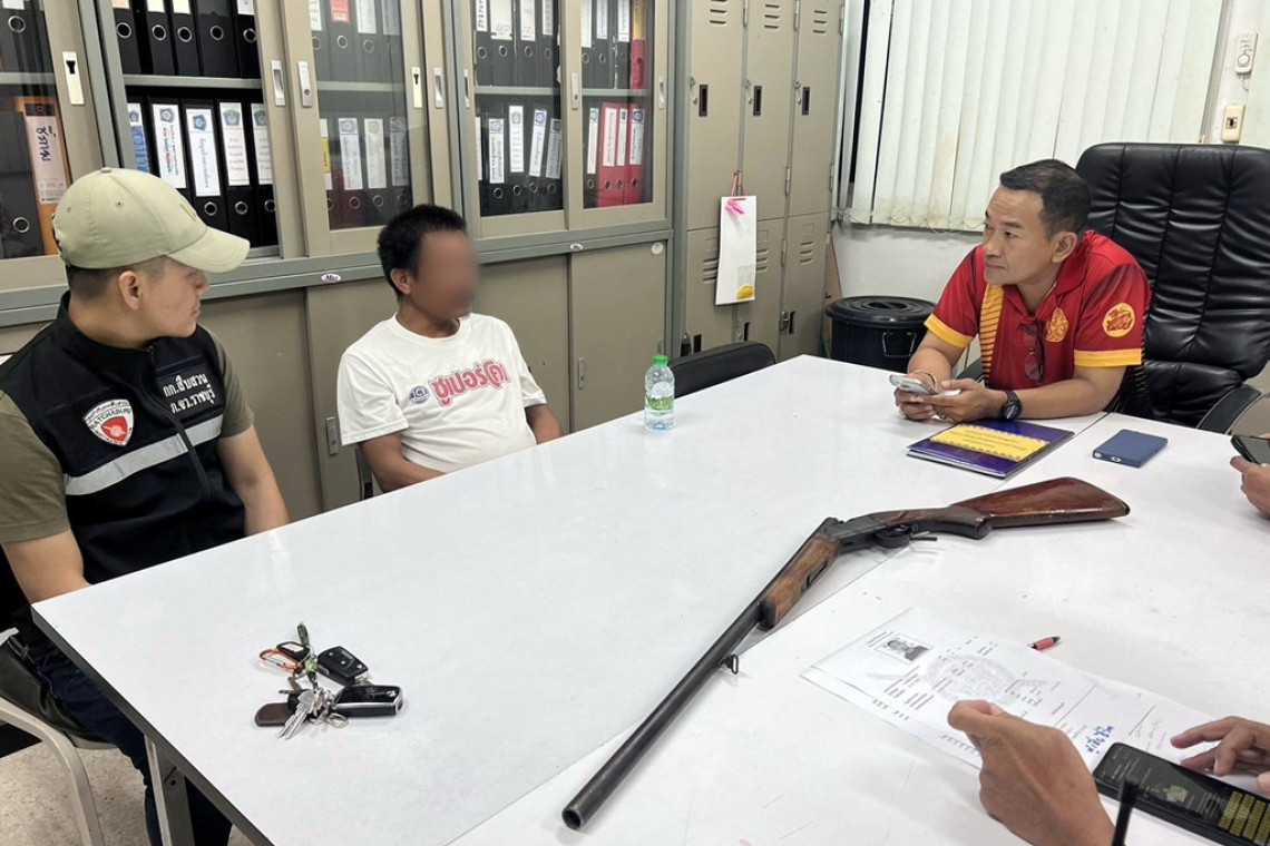 ที่เกิดเหตุพบนายนเรศร์ หรือเพรช อายุ 4 2ปี ยืนรอมอบตัวกับเจ้าหน้าที่ตำรวจพร้อมด้วยอาวุธปืนลูกซองยาว โดยนายนเรศร์ รับว่าตนเป็นผู้ก่อเหตุใช้อาวุธปืนลูกซอง ยาวยิง นายสมชัย หรือชาย อายุ 33ปี จำนวน 2 นัด เนื่องจากมีสาเหตุโกรธเคืองเรื่องที่นายสมชัยหรือชายฯเคยทะเลาะวิวาทกับ บุคคลในครอบครัวของนายนเรศร์ และนายนเรศร์กล่าวว่า ตนเองได้ยินว่าผู้ตายจะขู่ทำร้ายตัวเองด้วยเมื่อ 2-3 วันที่ผ่านมา