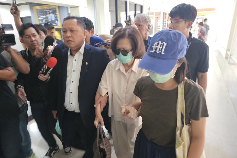 เมื่อเวลา 13.00 น. วันที่ 23 พ.ย.67 ที่กองบัญชาการตำรวจนครบาล (บช.น.) นางจารุวรรณ วนาสิน อายุ 79 ปี ภรรยาของนายแพทย์บุญ ซึ่งเป็นผู้ลงลายมือชื่อเป็นผู้ค้ำประกันในสัญญาต่างๆ พร้อมด้วย น.ส.นลิน วนาสิน อายุ 51 ปี บุตรสาวของนายแพทย์บุญ ซึ่งเป็นผู้ลงลายมือชื่อเป็นผู้ค้ำประกันในสัญญาต่างๆ โดยทั้ง 2 เป็นผู้ต้องหาในหมายจับข้อหา ร่วมกันฉ้อโกงประชาชน และร่วมกันให้กู้ยืมเงินที่เป็นการฉ้อโกงประชาชน เดินทางเข้ามอบตัวกับเจ้าหน้าที่ โดยมี นายชำนาญ ชาดิษฐ์ ทนายความ ที่ห้องประชุม บก.น.1 ชั้น 3 อาคาร บช.น.